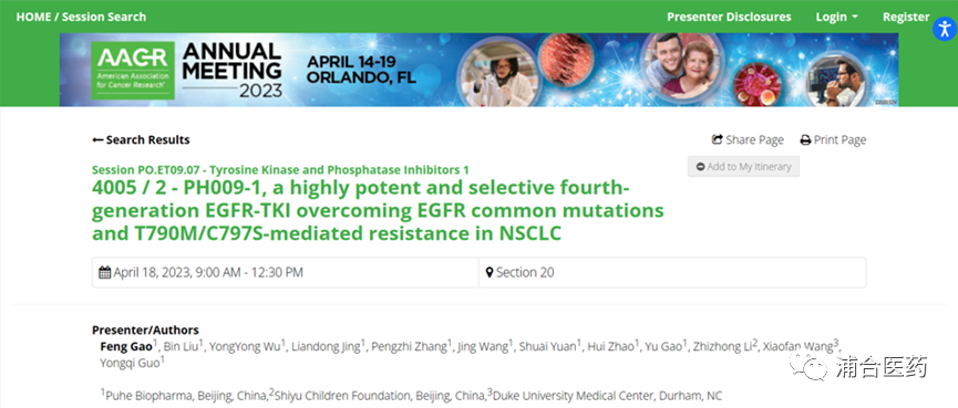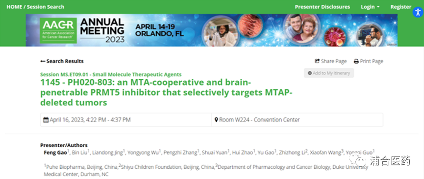 此次大會,蘇州浦合醫藥共有兩個自主研發項目PH009-1(四代EGFR項目)和PH020-803(新一代PRMT5抑制劑)向本屆AACR年會投稿,這也是浦合研究數據首次對外展示,兩個項目均獲得了會務組的高度認可。其中,PH009-1在會議上進行海報展示,PH020-803獲邀在會議上進行口頭報告。當前,兩篇摘要均已在線公開。